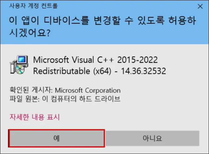 필수 구성 요소를 다운로드 하는 과정에서 PC가 최대 5번까지 재부팅 될 수 있음!