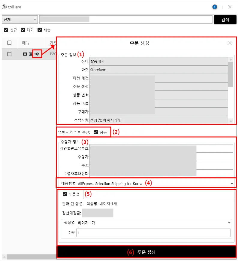 개인통관고유부호, 수령자, 수령자휴대전화, 주소 표시