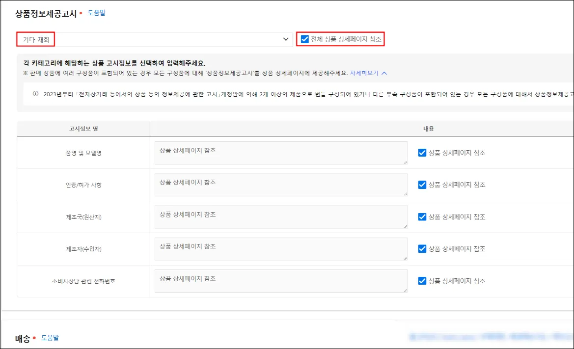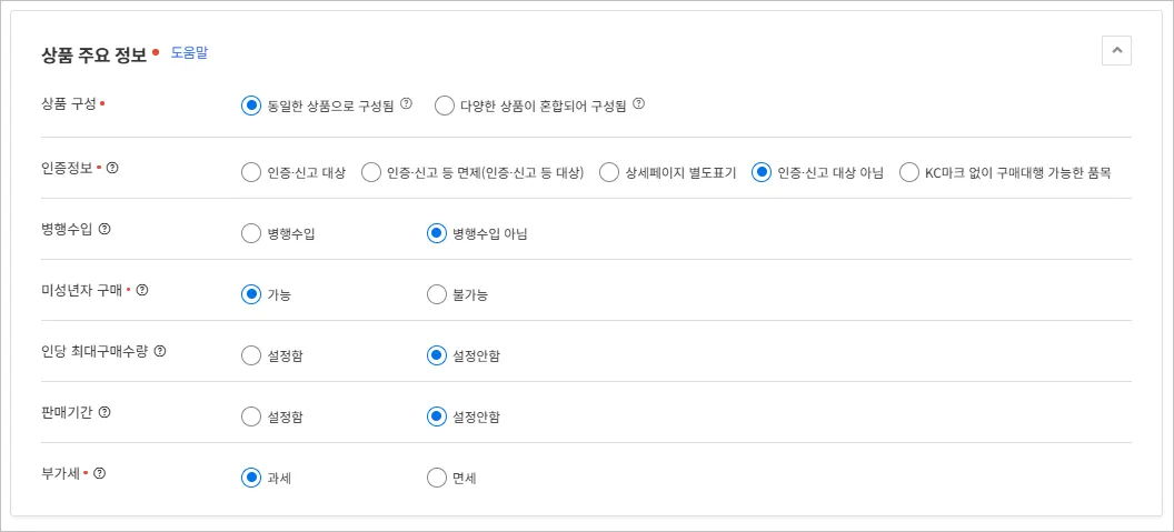 : 쿠팡 업로드 시 인증·신고 대상 아님 값으로 자동 반영됩니다.