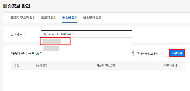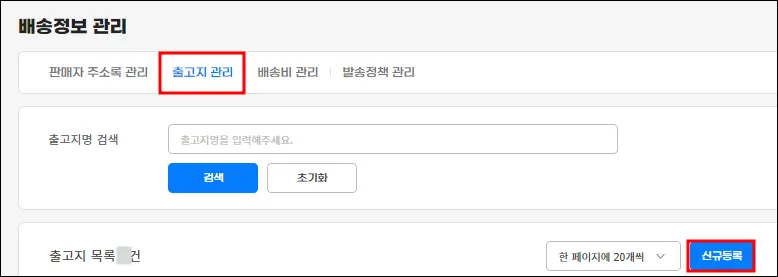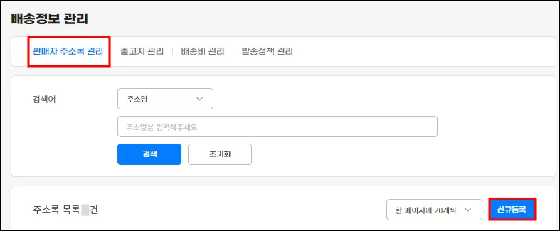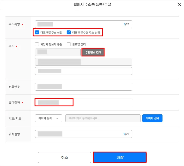 대표 반품주소 설정, 대표 방문수령 주소 설정 필수 체크