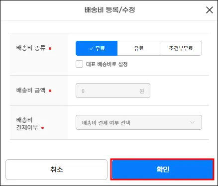 대표 배송비로 설정 필수 체크