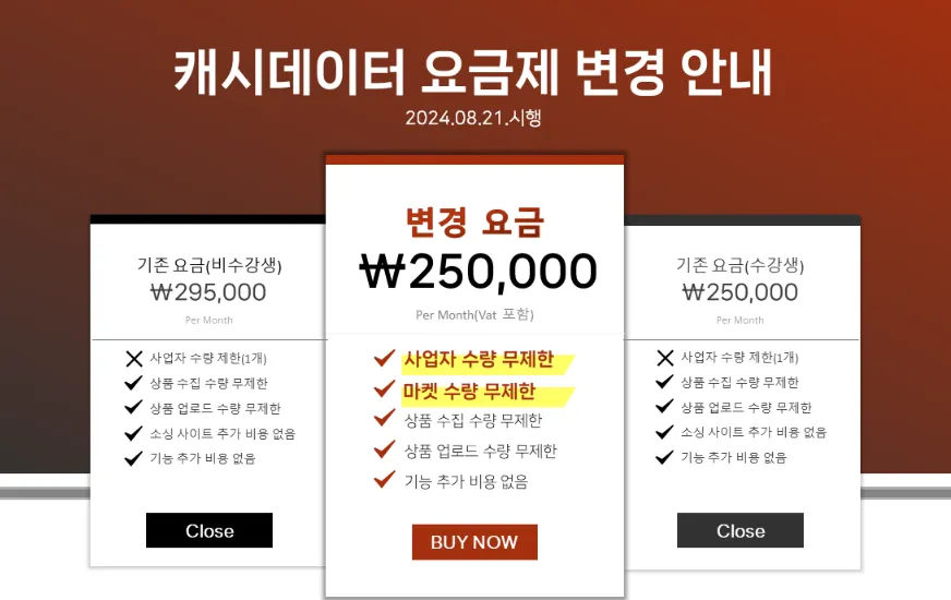 계정 1개 요금으로 사업자 및 마켓 무제한 연동 지원