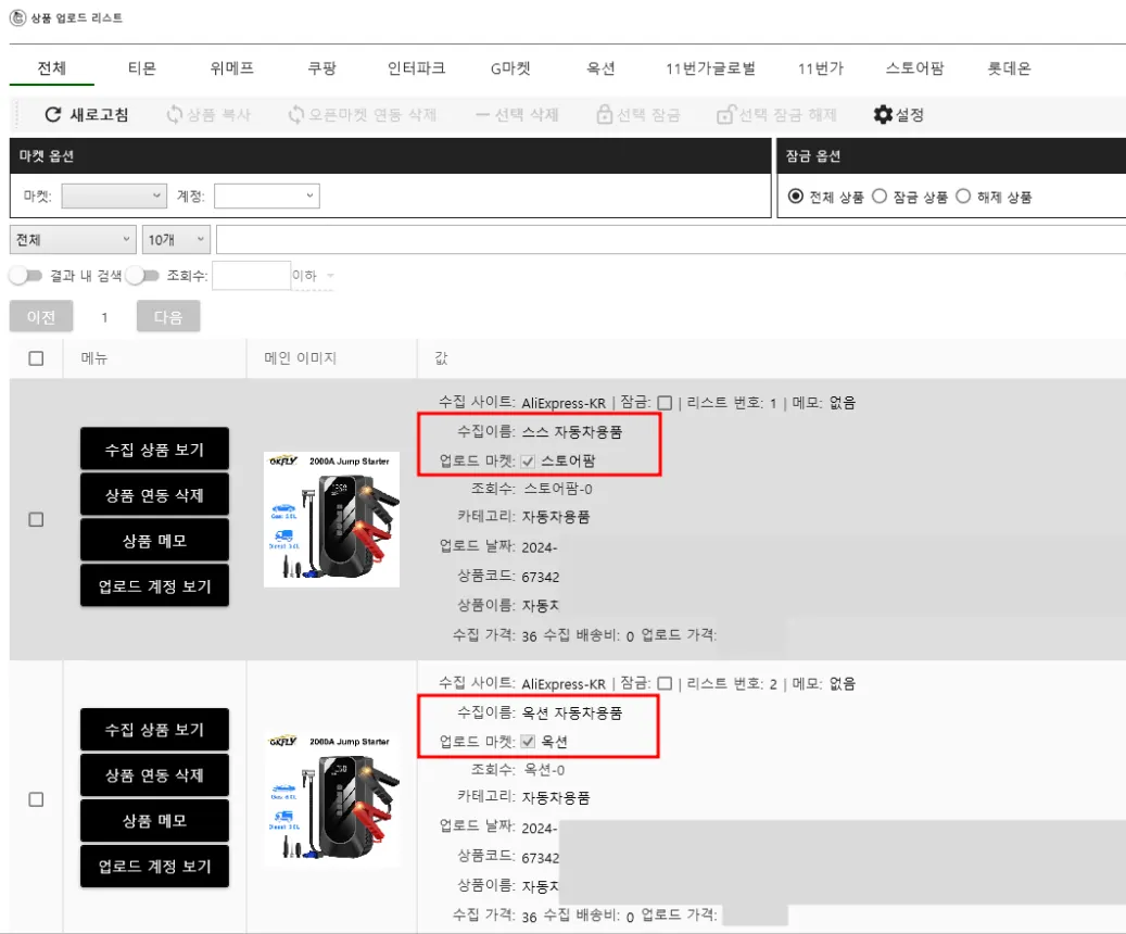 클릭 한 번으로 연동한 모든 오픈 마켓에 업로드 지원