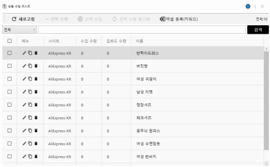 키워드 또는 카테고리 검색을 통해 간단하게 모든 상품 대량 소싱