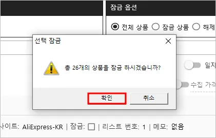 다수 상품 일괄 잠금 설정하기