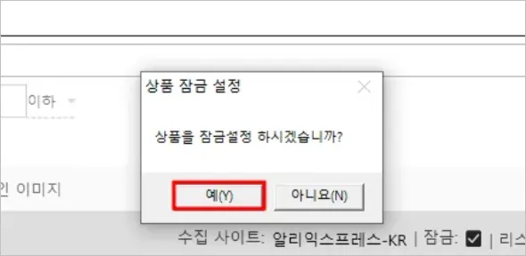 3. 상품 잠금 설정 팝업창이 뜨면 예(Y)를 클릭합니다.