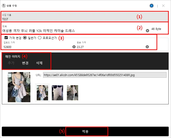 창 접속 방법 : [리스트 관리] - [상품 대기] - [상품 수정]