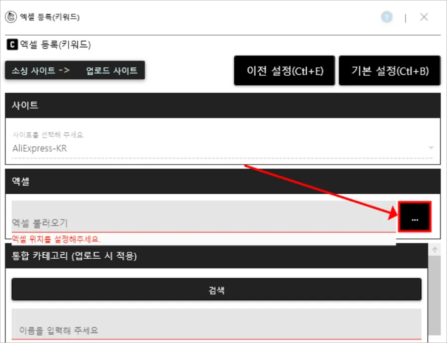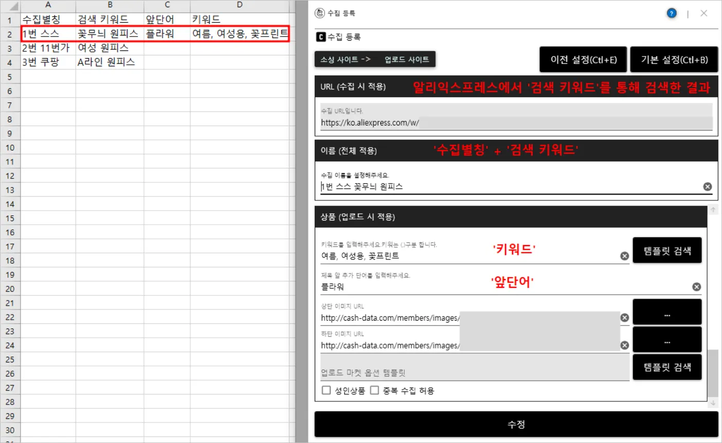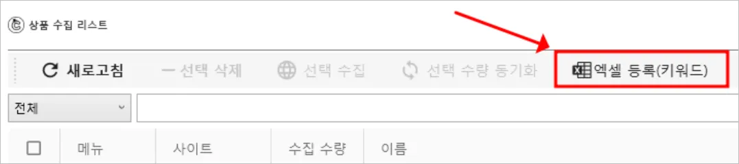 수집 리스트 엑셀 등록(키워드)