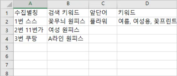 키워드 등록 엑셀 양식 설명
