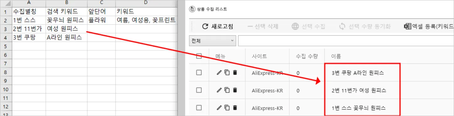 키워드 엑셀 등록 기능으로 수집리스트 일괄 생성하기