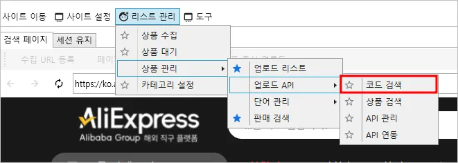 : 업로드한 상품을 상품 코드로 검색하여 소싱 사이트 이동, 잠금 설정할 수 있는 기능