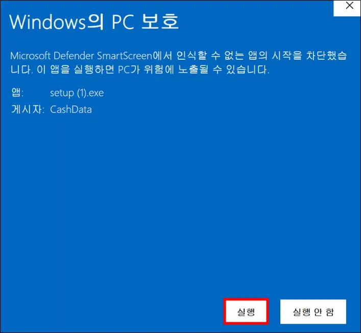 3. Windows의 PC 보호창에서 추가정보 , 실행을 눌러 진행합니다.