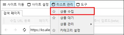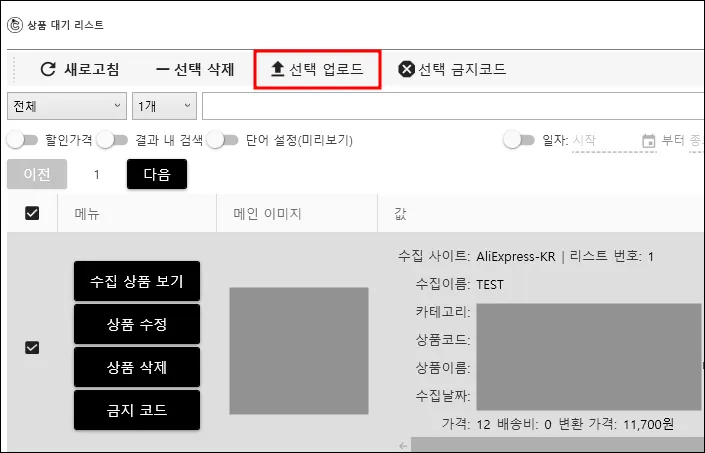 수집 등록 창에서 설정한 그대로 업로드