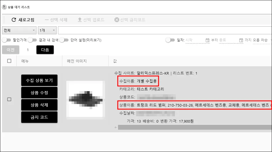 개별 수집한 상품은 즉시 대기 리스트로 들어오기 때문에 별도로 수집을 진행할 필요가 없습니다.