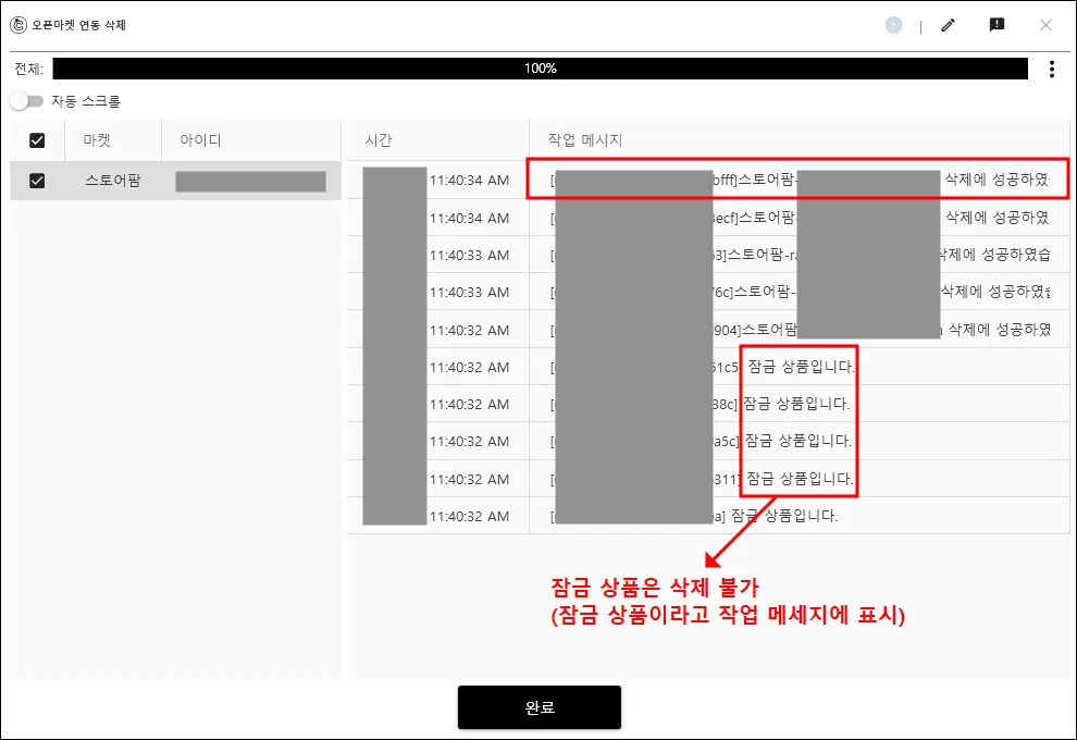 잠금 기능을 사용한 상품은 어떠한 경우에도 삭제 불가