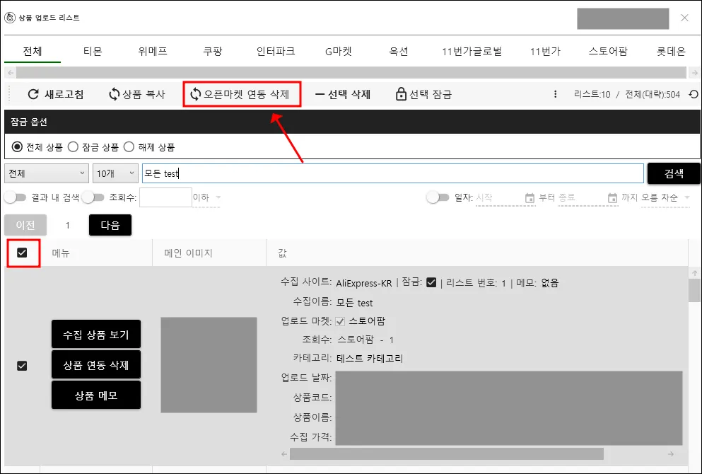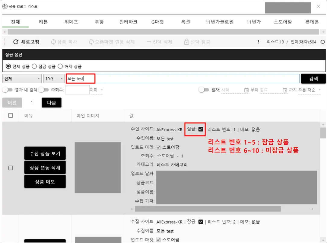 : 주문 들어온 상품은 잠금 기능을 사용하여 일괄 잠금 설정한 후, 나머지 상품은 전부 삭제