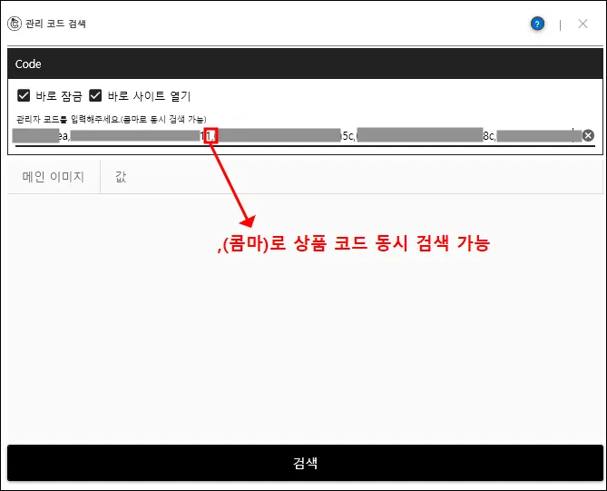 3개의 상품 코드를 넣어 동시에 검색했을 때,