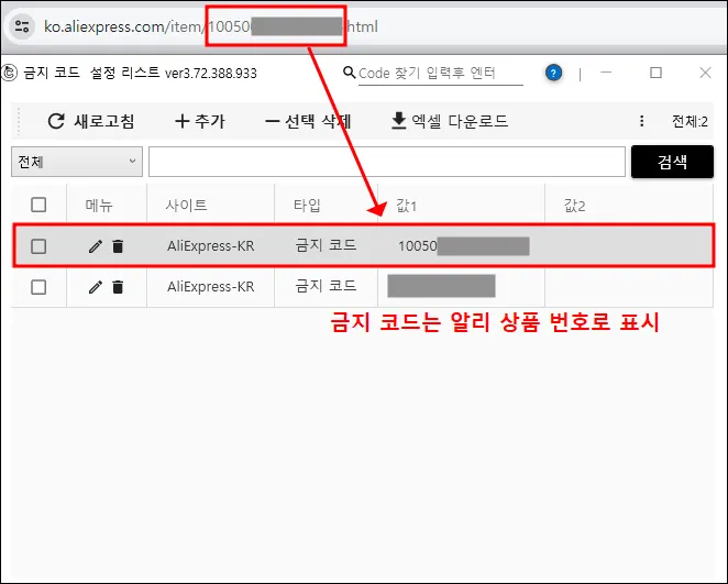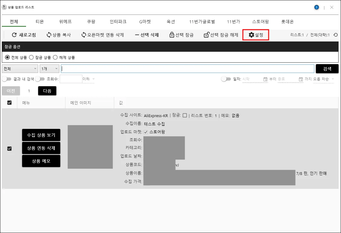 해당 기능을 사용하면 업로드 리스트에 지재권 등 문제되는 특정 상품이 있을 때