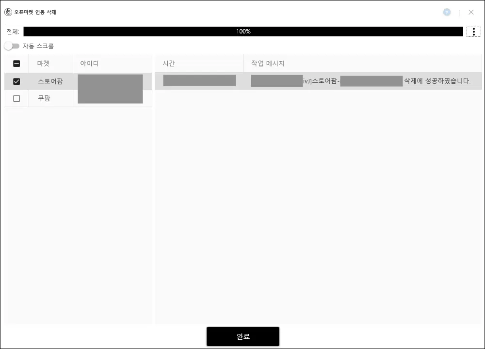 해당 기능 체크 시 선택 삭제에 성공한 상품이 업로드 리스트에서 삭제됨과 동시에