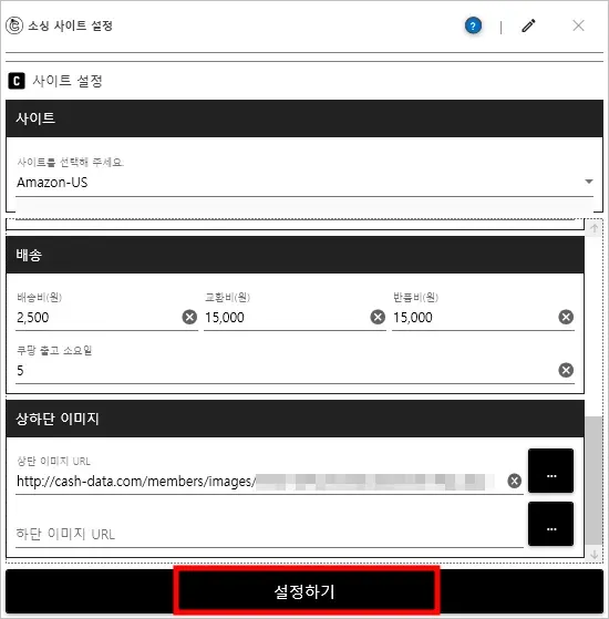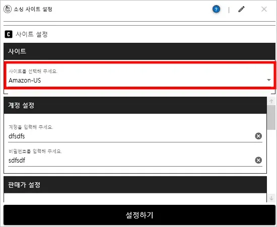 일부 외국 해외 사이트의 경우 상품 수집을 위한 계정 설정 필요
