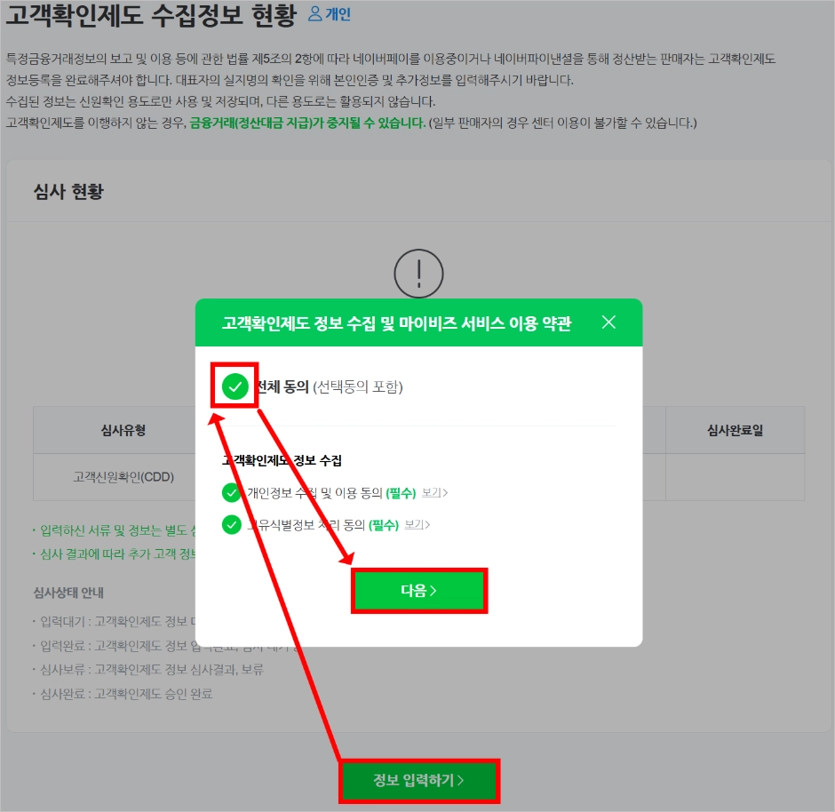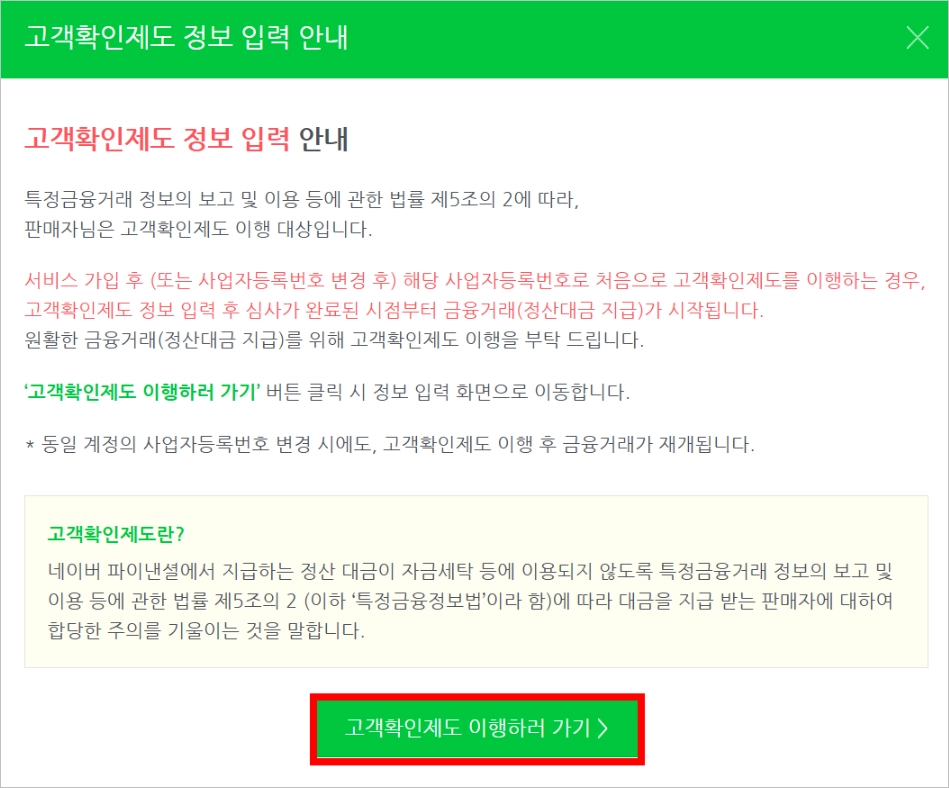 고객확인제도 정보를 인증받지 못하면 정산을 받을 수 없으니 바로 진행해주시길 바랍니다.