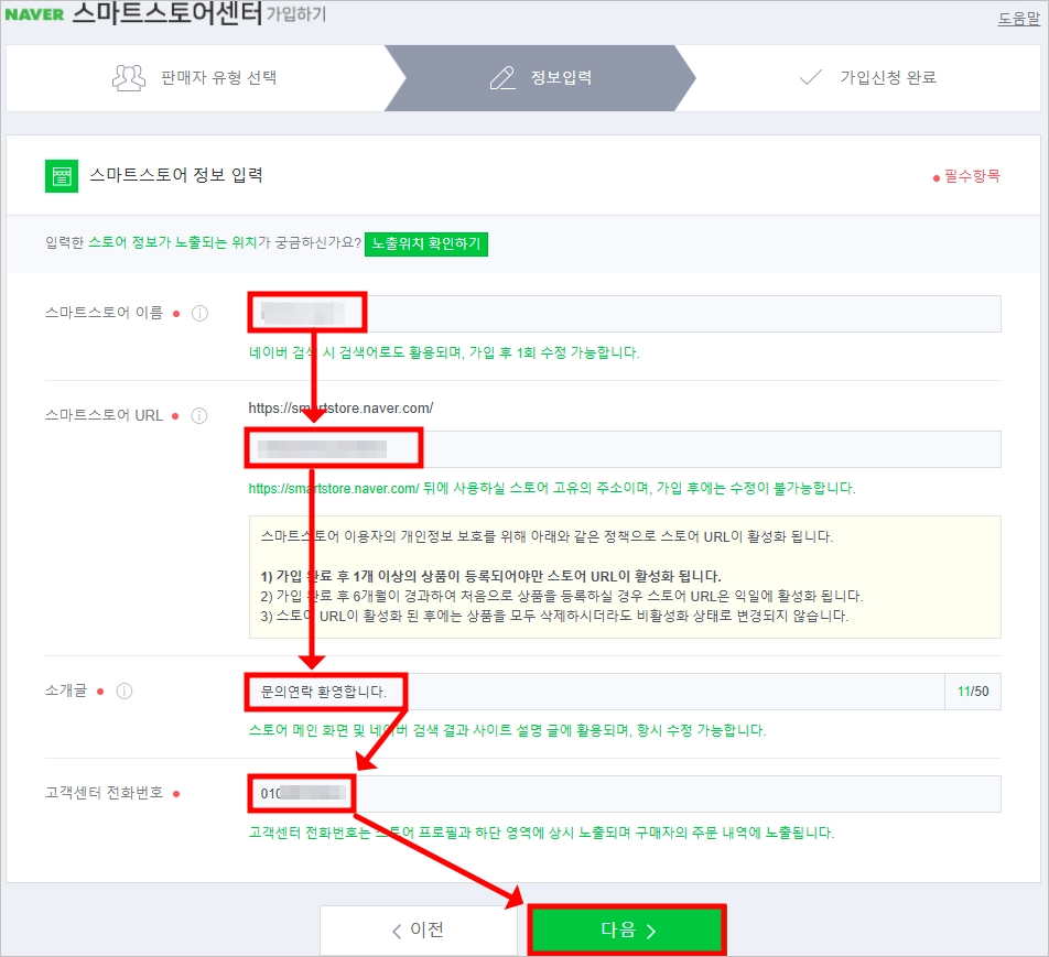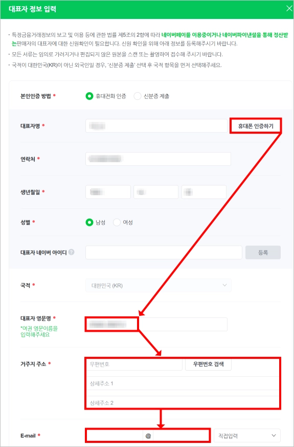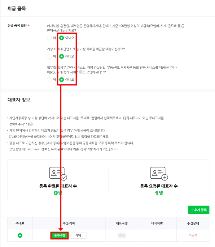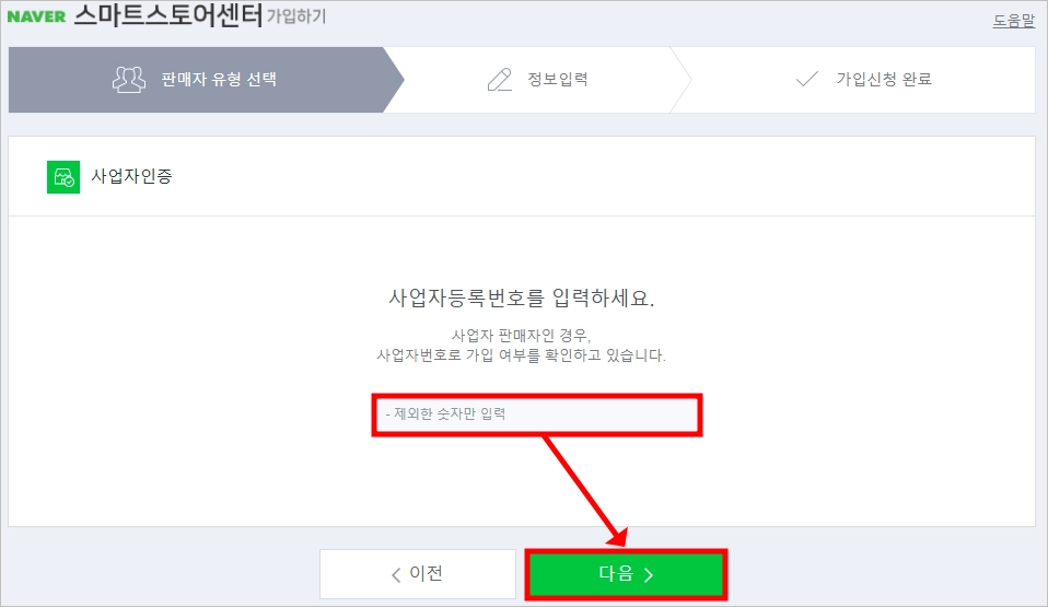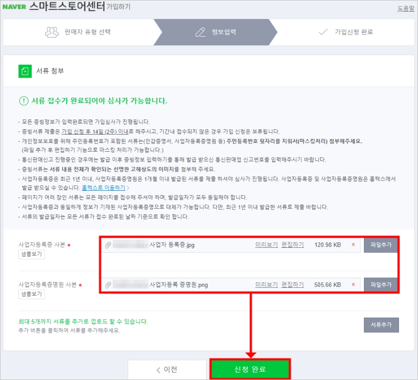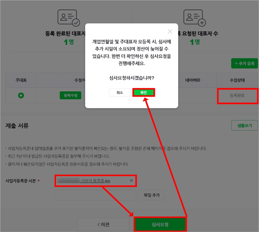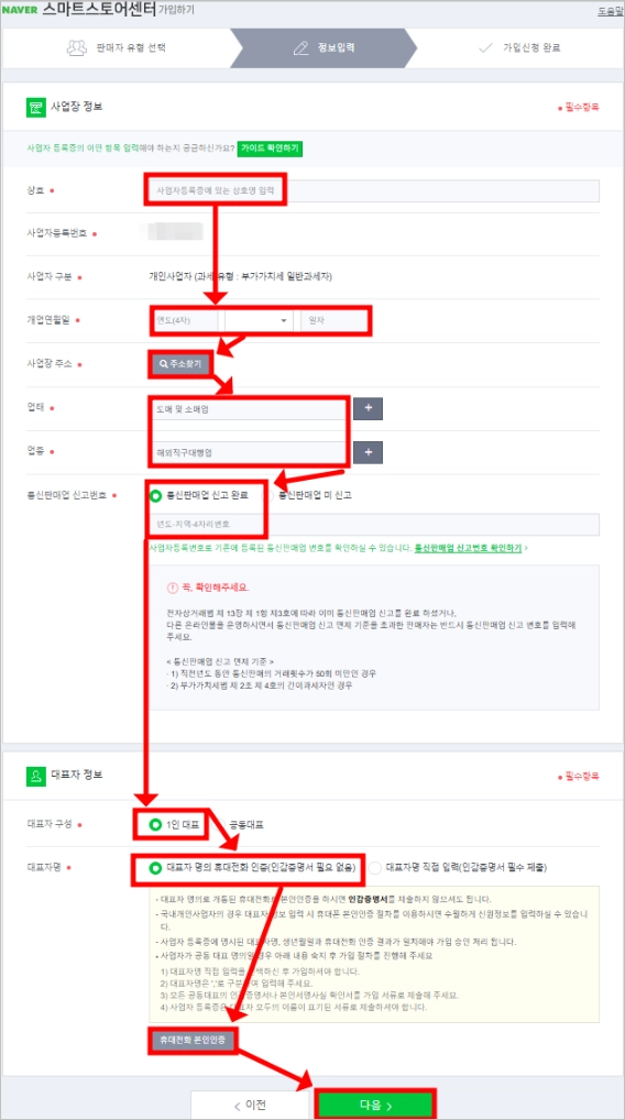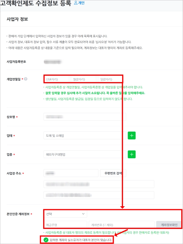 사업자 등록증 상의 정보를 정확하게 입력할 것