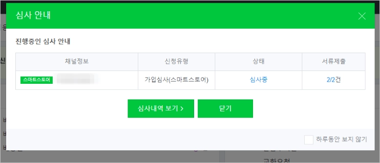 [심사 안내] 팝업 창에서 “심사중”이라고 표시되어 있으면 정산 신청 신청 완료 상태