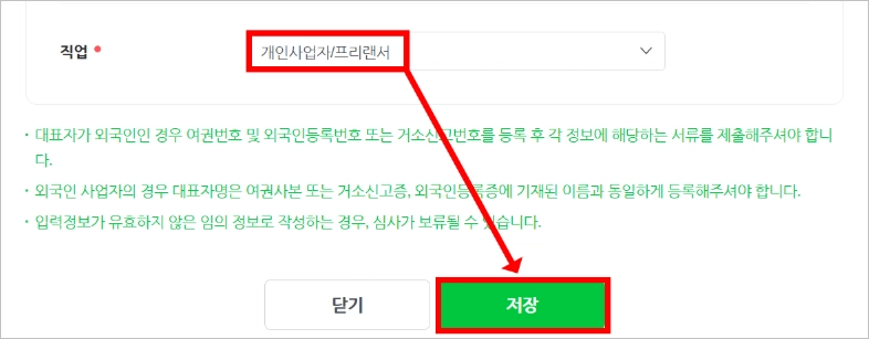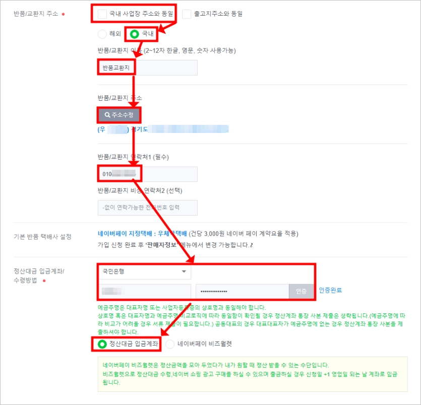 정산대금 입금 계좌 : 개인 계좌를 입력 (사업자 통장 필요없음)