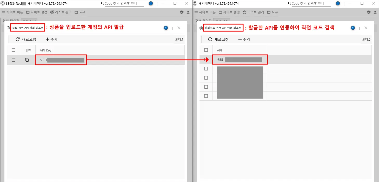 검색하는 캐시데이터 계정 ≠ 상품코드를 업로드한 캐시데이터 계정