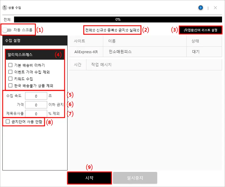 상품 수집 시 실시간 나타나는 작업 메세지의 스크롤 바를 자동으로 내릴지 선택
