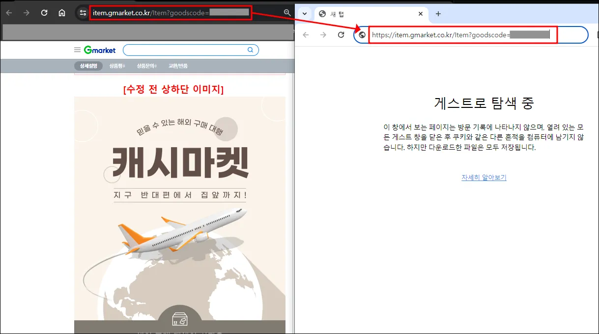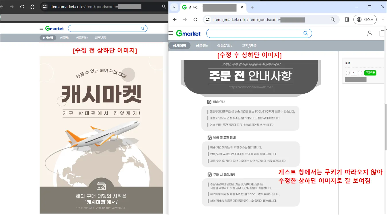 수정 전 상하단 이미지 쿠키가 따라오는 경우