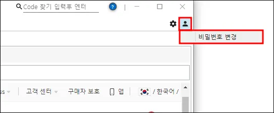 1. 우측 상단 [사용자 정보] 아이콘을 클릭해 비밀번호 변경 창에 접속합니다.