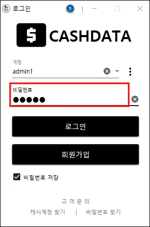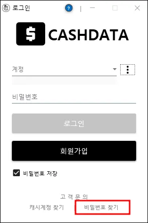 1. 캐시데이터를 새로 실행하여 비밀번호 찾기를 클릭합니다.