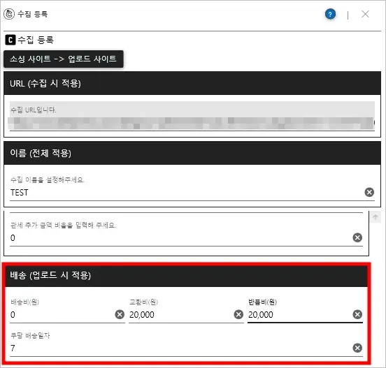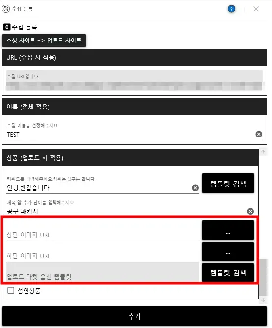 2) 상품 1페이지 화면에서 상단 [수집 url 등록] 버튼