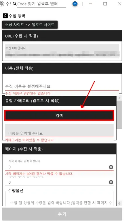 4. 수집 리스트 이름을 입력하고 통합 카테고리 검색 버튼을 클릭합니다.