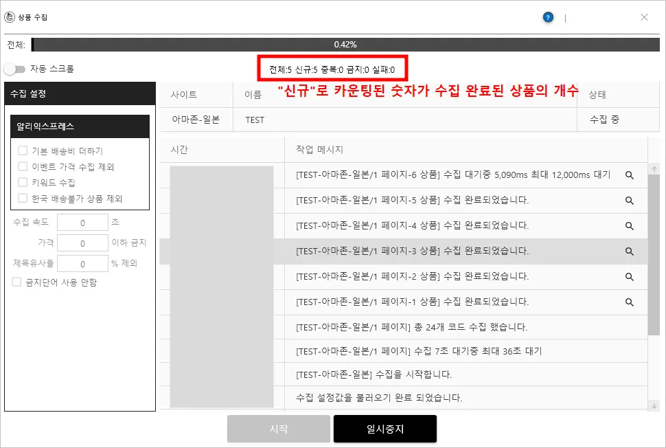 17. 시작 버튼을 누르면 상품 수집이 시작되고,