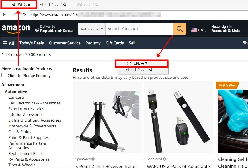 1) 상품 1페이지 화면에서 [마우스 우클릭] - [수집 url 등록]