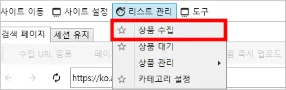 15. [리스트 관리] - [상품 수집]을 클릭합니다.