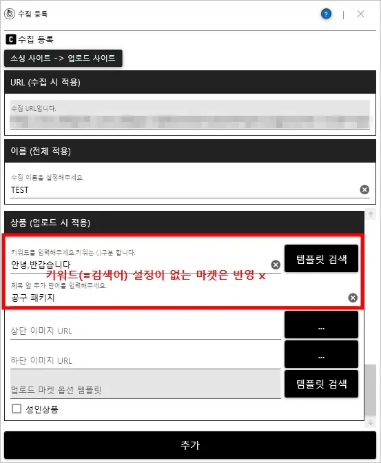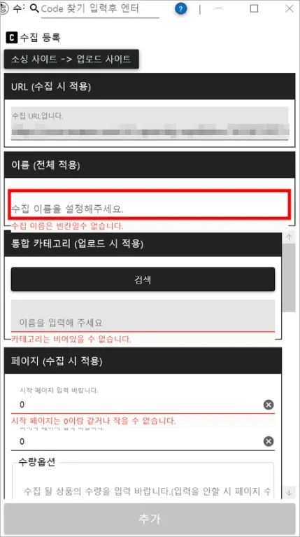상품 수집 ulr 등록 (=수집 리스트 생성) 방법