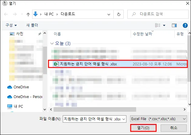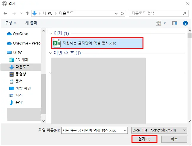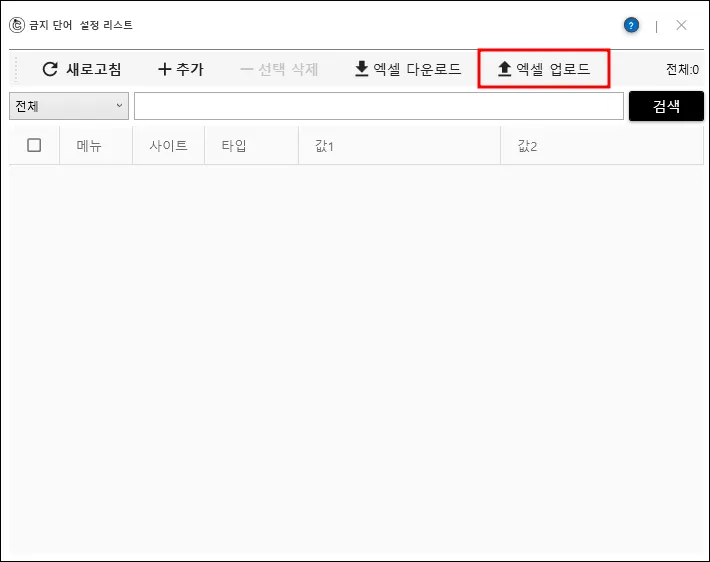 금지 단어 기존 단어에 추가하는 방법 (엑셀 업로드 시)