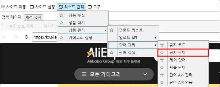 (금지 단어가 포함된 상품은 수집 실패 or 업로드 실패 발생)
