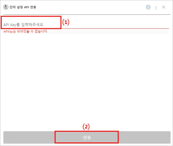 다른 캐시데이터 계정에서 생성한 단어 API Key를 입력
