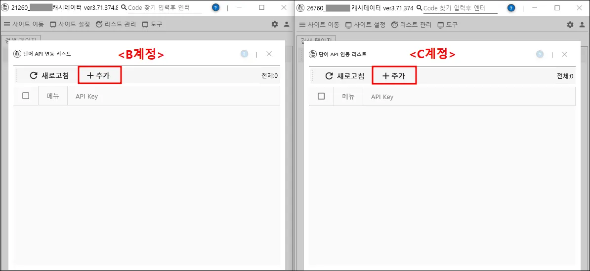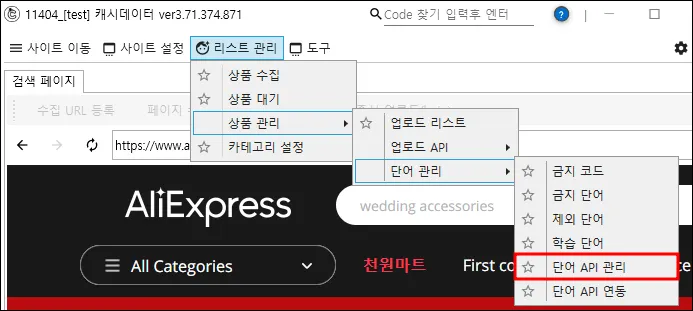 3) 단어가 등록되지 않은 B,C,D …등 계정에 A계정 단어 API 연동
