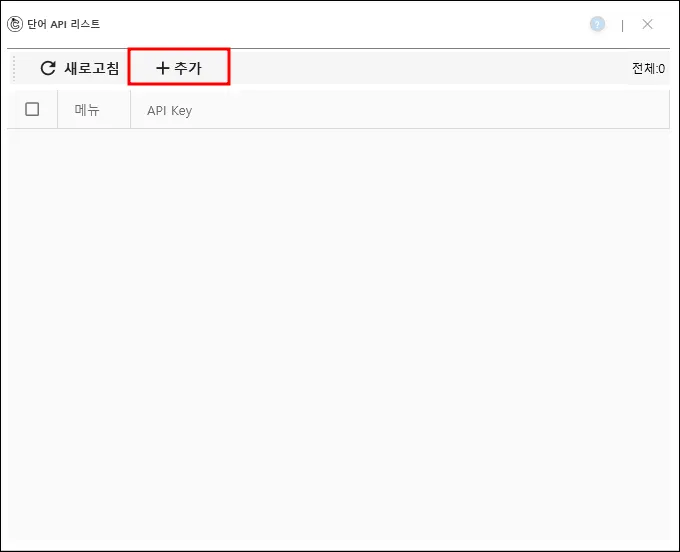단어 API 관리 : 로그인한 계정의 단어 설정 API를 생성하는 창 (B계정)
