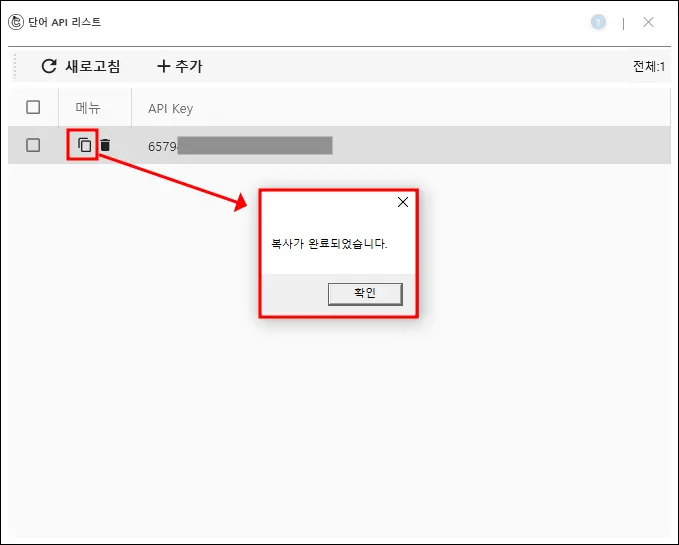 ex) A계정에서 생성한 단어 API를 B계정에 연동