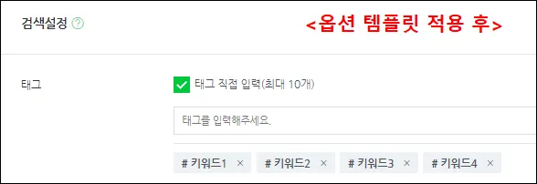 옵션 템플릿의 키워드 추가 설정이 수집 등록 창에 키워드 설정보다 우선 적용됩니다.