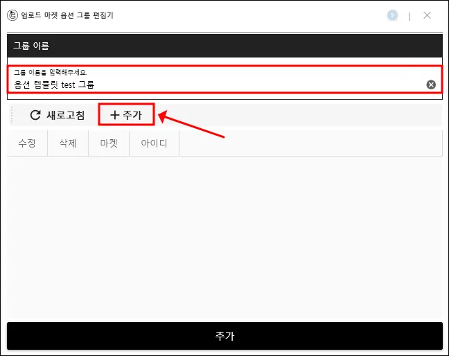 옵션 그룹별로 마켓의 같은 계정을 중복하여 등록할 수 없습니다. (그룹이 다르면 설정 가능)