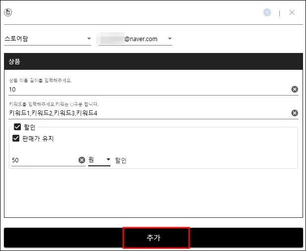 할인 기능은 스마트스토어, 11번가, 11번가 글로벌, 지마켓, 옥션, 쿠팡, 인터파크 적용