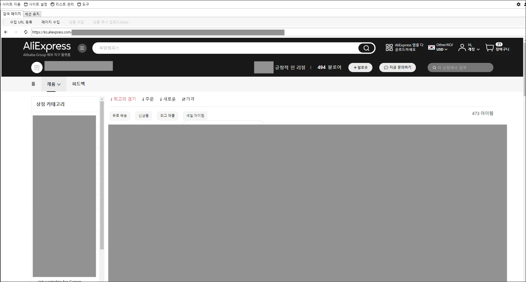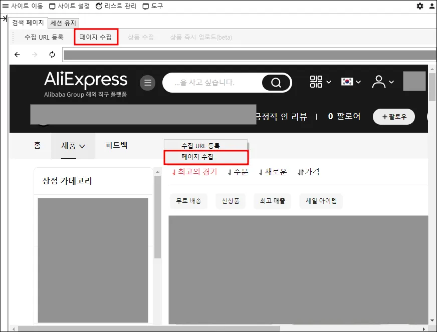 : 현재 노출되고 있는 페이지를 그대로 수집하는 기능 (알리 익스프레스만 지원)