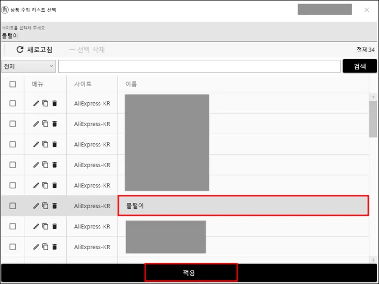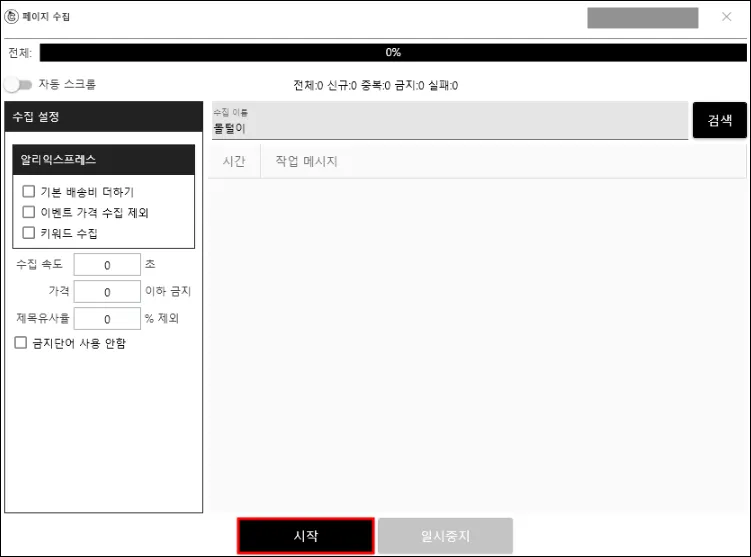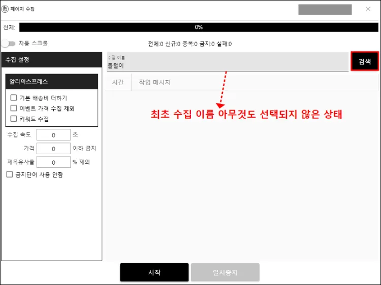 페이지 상품 수집 시 상품 수집 전 적용할 수집 리스트를 미리 생성해야 합니다.